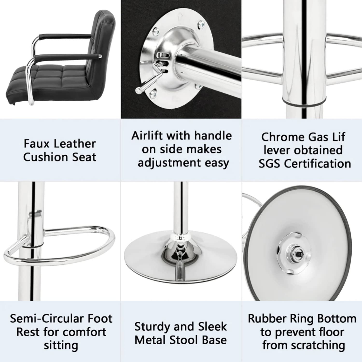 • Anti-skid and easy to clean: The stool stands of our bar stools on a sturdy circular chrome steel base, which has a rubber ring to prevent your floor from scratching. And rubber ring of barstools also prevent the harsh sound when moving the bar chairs.