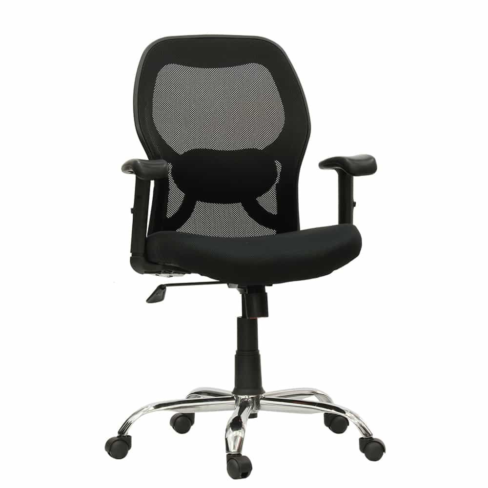 - TECH SPECIFICATIONS: Armrest: Fibre material | Swivel: 360º swivel | Wheels: 50mm wheels | Base: Metal | Maximum weight capacity: 90 kgs | Height Suitability: 5ft – 5ft.10″ | Color: Black | GasLift : Class 3 | Warranty: 12 Months | DIY Assembly
